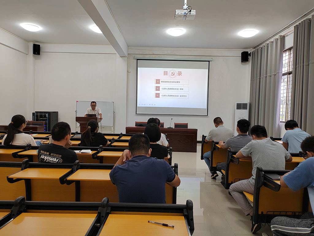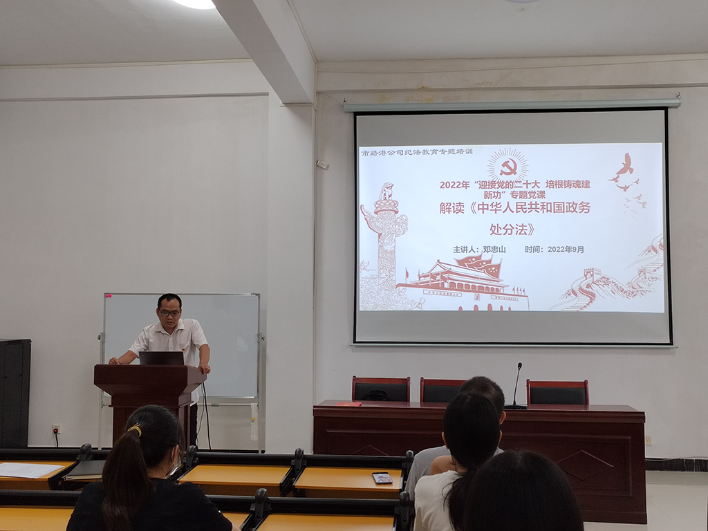 9月8日,路港公司第三黨支部在污水公司多功能室開(kāi)展2022年“迎接黨的二十大 培根鑄魂建新功”專題黨課活動(dòng),由路港公司第三黨支部書(shū)記鄧忠山主講題為《解讀<中華人民共和國(guó)公職人員政務(wù)處分法>》的專題黨課,污水公司全體員工參加學(xué)習(xí)。